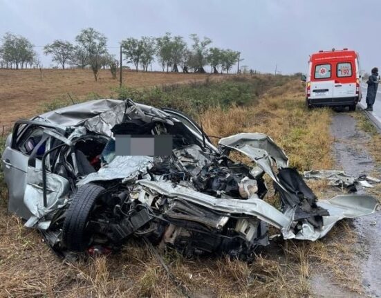 Um acidente envolvendo um veículo de passeio e um caminhão deixou três pessoas de uma mesma família morta, na manhã