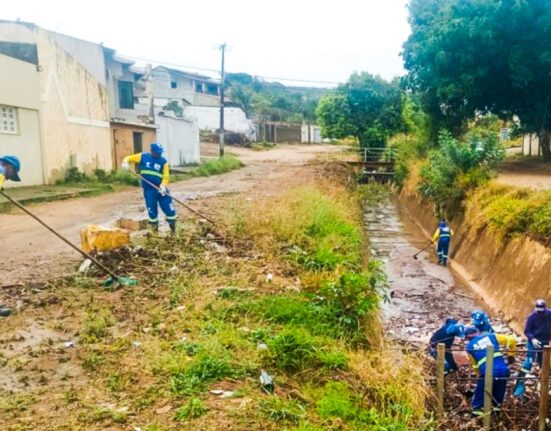 As equipes da Secretaria Municipal de Serviços Públicos e da Empresa Torre seguem com o mutirão de limpeza de vias,
