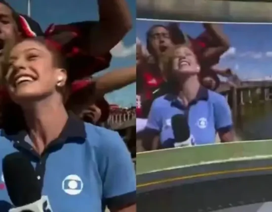 A jornalista Duda Dalponte, da TV Globo, foi agredida por torcedores do Flamengo enquanto realizava uma entrada ao vivo para.