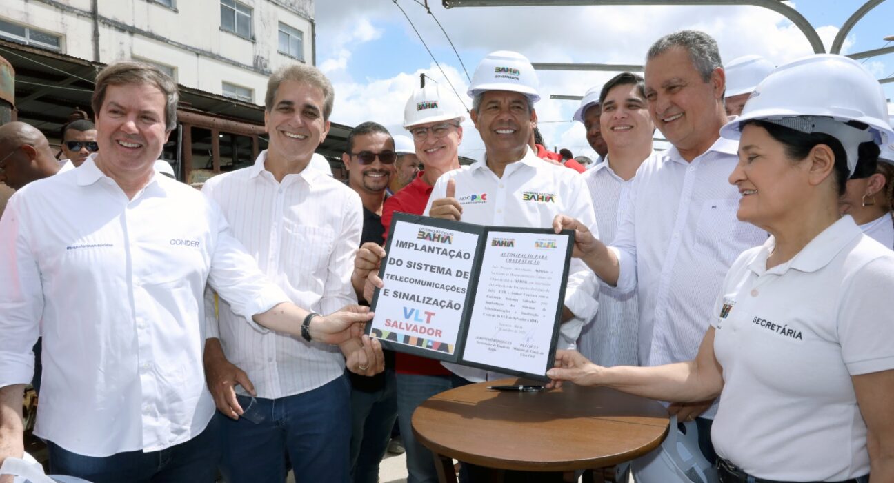 O governador Jerônimo Rodrigues e o ministro da Casa Civil, Rui Costa, autorizaram nesta sexta-feira (17) a convocação da empresa vencedora da licitação para implantação dos sistemas de telecomunicações, sinalização e controle do Veículo Leve sobre Trilhos (VLT) de Salvador e Região Metropolitana. A agenda incluiu visita às obras dos Lotes 1 e 2, começando pelo Pátio da Calçada. A iniciativa, executada pela Companhia de Transportes do Estado da Bahia (CTB), vinculada à Secretaria de Desenvolvimento Urbano (Sedur), marca uma nova fase no projeto, que já soma mais de dois mil trabalhadores e investimento total de R$ 5,4 bilhões.