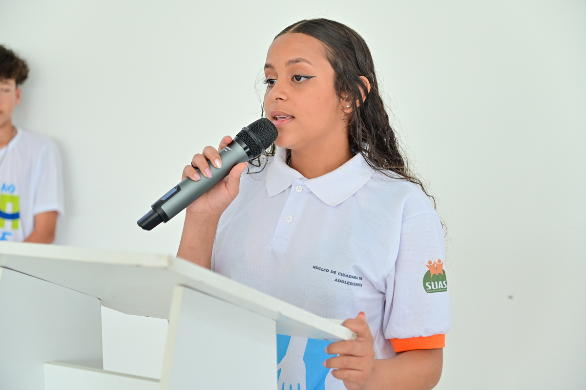 A adolescente do Nuca, Isabela Araújo, apresentou no resultado sistêmico Equidade Étnico-Racial nas políticas públicas municipais. Para ela, é fundamental que os adolescentes tenham oportunidade de debater temas como esse. “Eu acho que é importante a gente abordar esse tema porque muitos adolescentes pensam que o racismo deve ser lembrado somente no movimento negro, mas não. O racismo, infelizmente, está no nosso dia a dia e a gente nem percebe. Então, o propósito é ajudar a trazer soluções para o racismo. E para a gente estar representando os adolescentes do Nuca é muito importante, porque às vezes nós adolescentes não temos a oportunidade de falar. Esse espaço aqui é para isso”, relatou a adolescente.